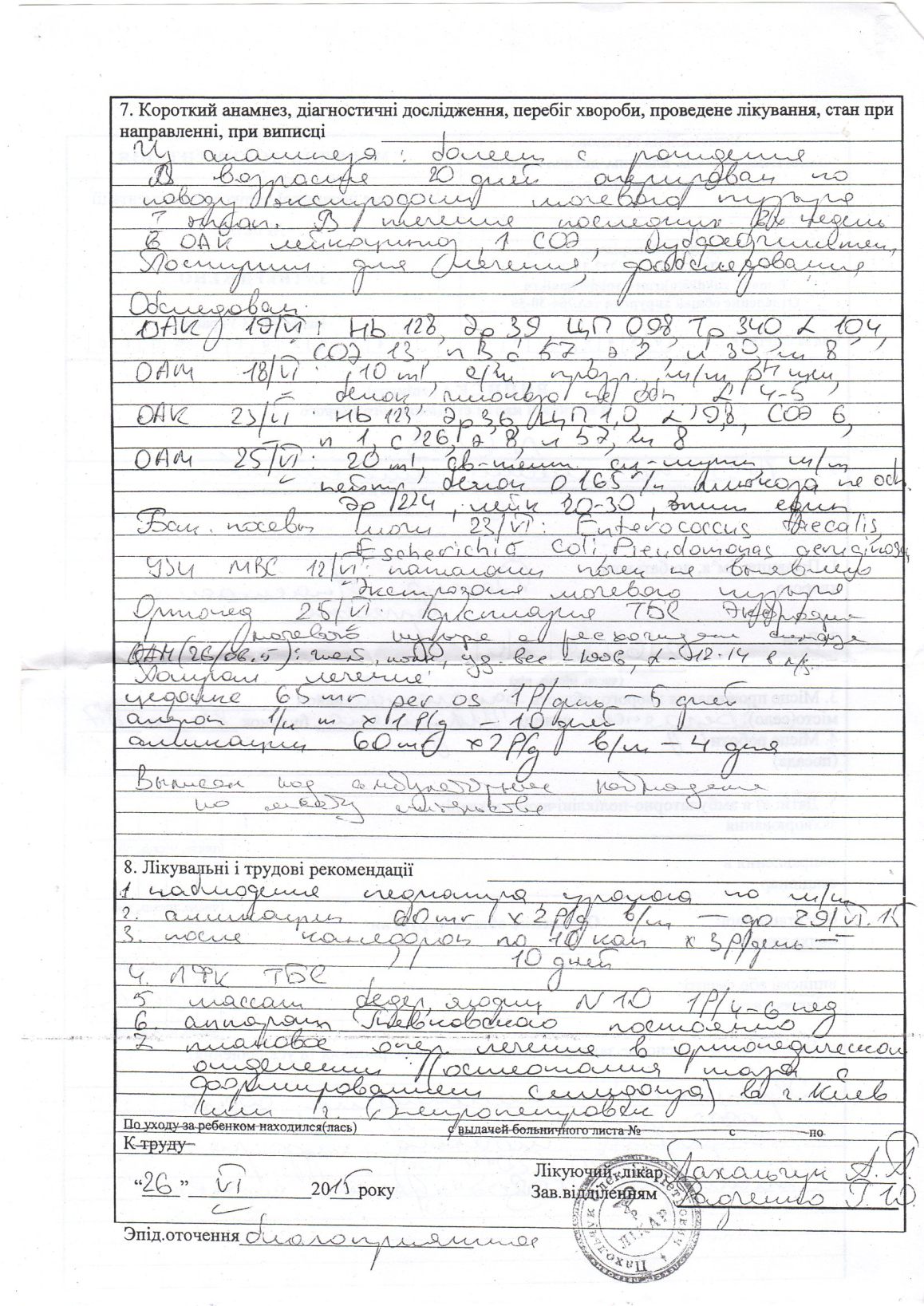 Each month’s Nastenka’s temperature rises to 39.5 C due to chronic pyelonephritis. The continuous use of medication has caused Nastenka to develop pancreatic bowel disease.