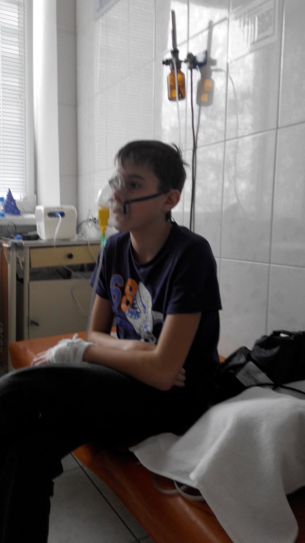 The junior boy, Tiomka, was treated with antibiotics, “Tivortin” and “Essentiale”. Owing to the treatment, his condition improved a little. We hope that there are will be no complications in the near future.