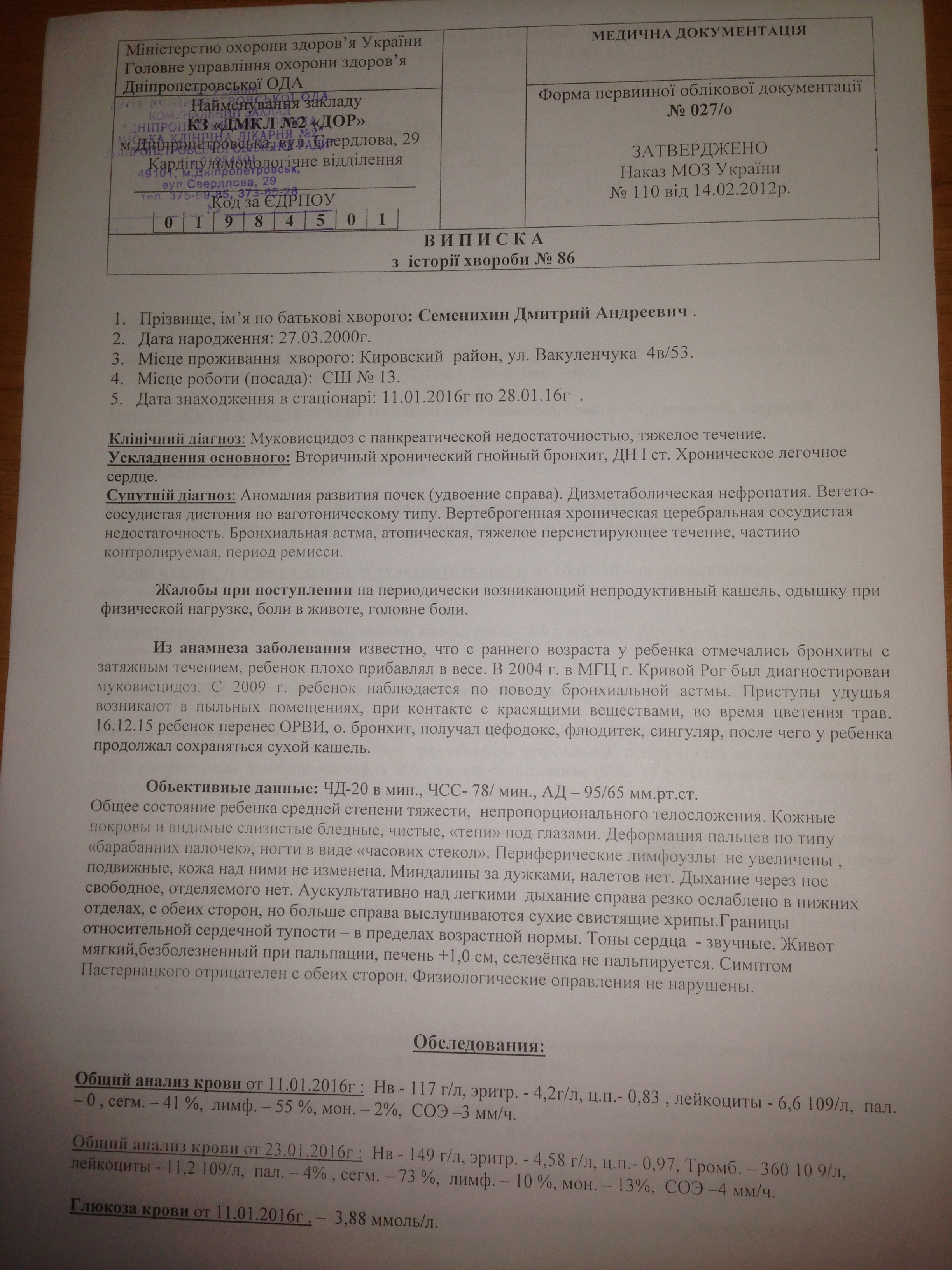 The family couldn’t afford the previous treatment, and now, with this new medication, the financial burden became unberable. For instance, Dimka’s “Pulmozyme” costs 15 000 UAH (USD 600) per month. And this is only a part of the treatment.