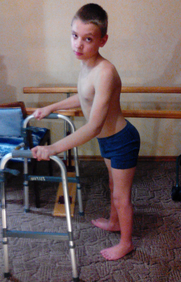 During the last year due to thorough treatment Vladik got new skills: can walk more evenly and stand on walker, his back became stronger.