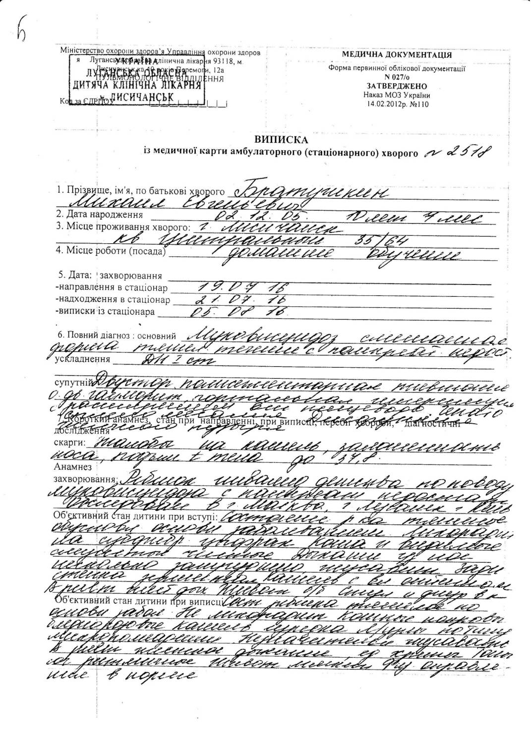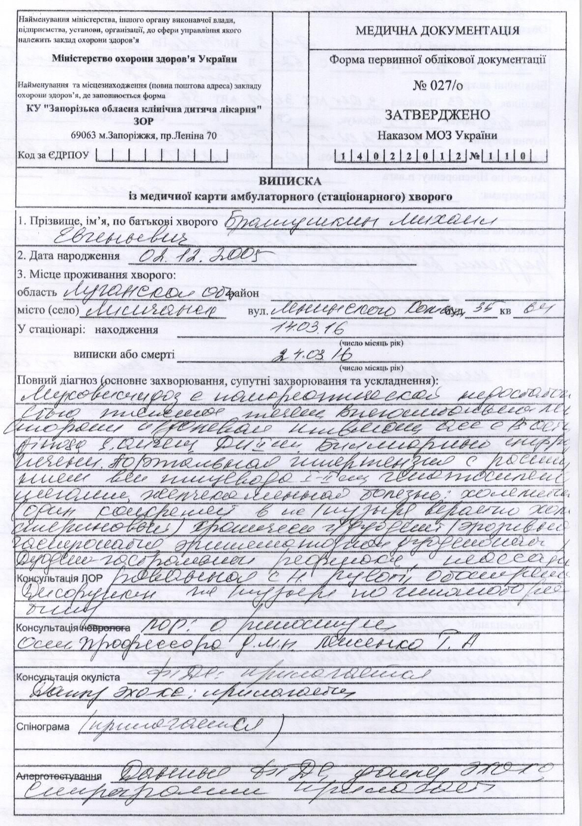 In March we went to the Zaporozhe Pulmonology Center where Misha underwent a round of antibiotics and some other treatments. We had hoped that he would not go back to the hospital before September, but we were mistaken. In July my son had a high temperature and started to cough at night. We were told to go to the Lisachanski Pulmonology Center and stayed there until the 5th of August.