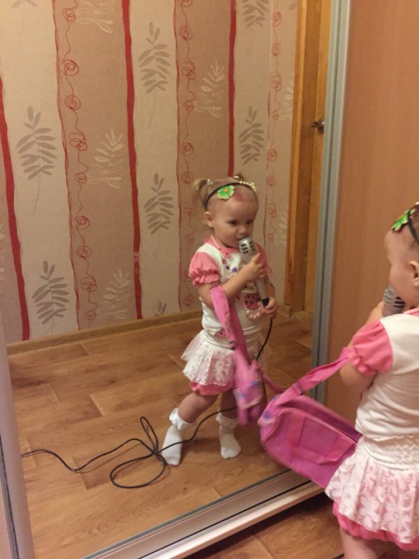 Just recently our little girl started talking, though she does not pronounce all the words clearly yet. But when her parents understand what she is saying, she feels so excited she starts clapping her hands. Besides, the little princess has a talent of a performer and a singer. As soon as she wakes up in the morning, she runs to her wardrobe and throws absolutely all of her clothes out to choose what she is going to wear. At first, her mom was complaining, but then she realized that the girl won’t change her ways. Besides, this girl of fashion only wears the clothes she chooses and refuses to wear anything else. After being all dressed up, she cheerfully puts on her favorite jewelry, takes a hair brush and sings at the mirror.