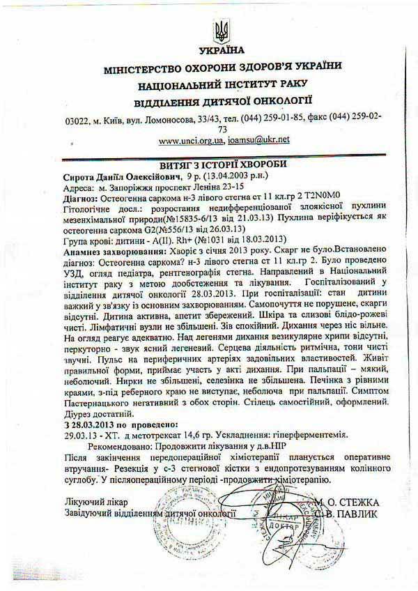 When in February Danil complained of the severe pain in his leg that wouldn’t subside for weeks, the family asked for medical help. Once the test results came back, Danil was first referred to the Cancer Unit at the Zaporozhye Regional Children’s Hospital, and then to the National Cancer Institute in Kiev. Back then no one realized what an ordeal would await this family. No one knew it was just the beginning of the battle for the elder son...