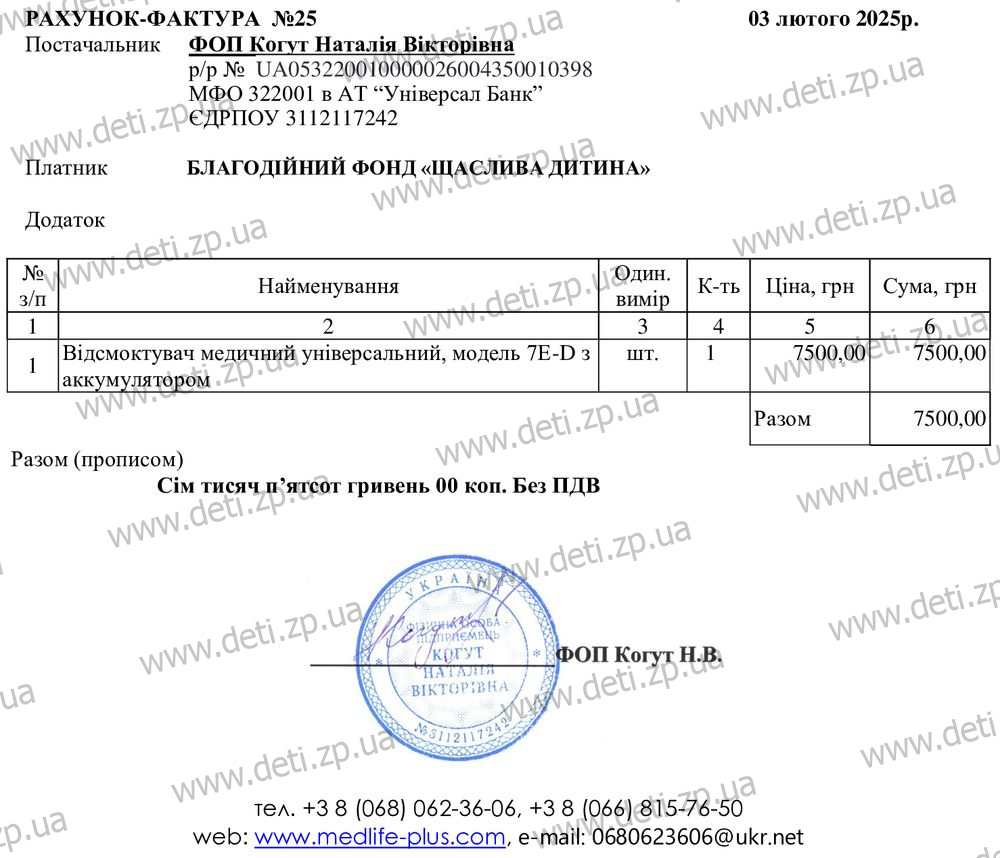At the end of last year, thanks to your help, we were able to provide Mykyta with diapers and medication worth approximately 6,000 UAH. Right now, he urgently needs a universal medical aspirator, which we have already reserved with a supplier. Its cost is 7,500 UAH.