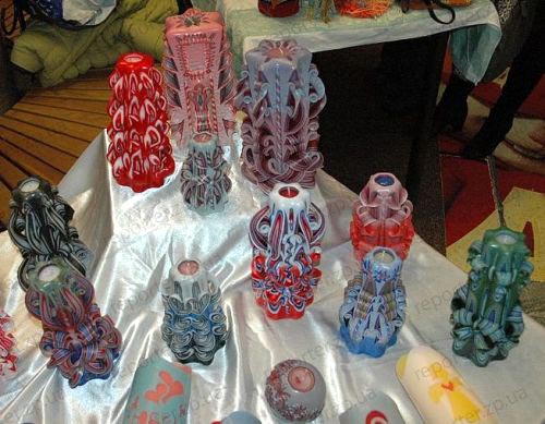 Свечи, сережки, кольца, куклы, талисманы, шарфики, сумочки, деревья радости, браслеты из бисера… это еще не полный список представленных работ.