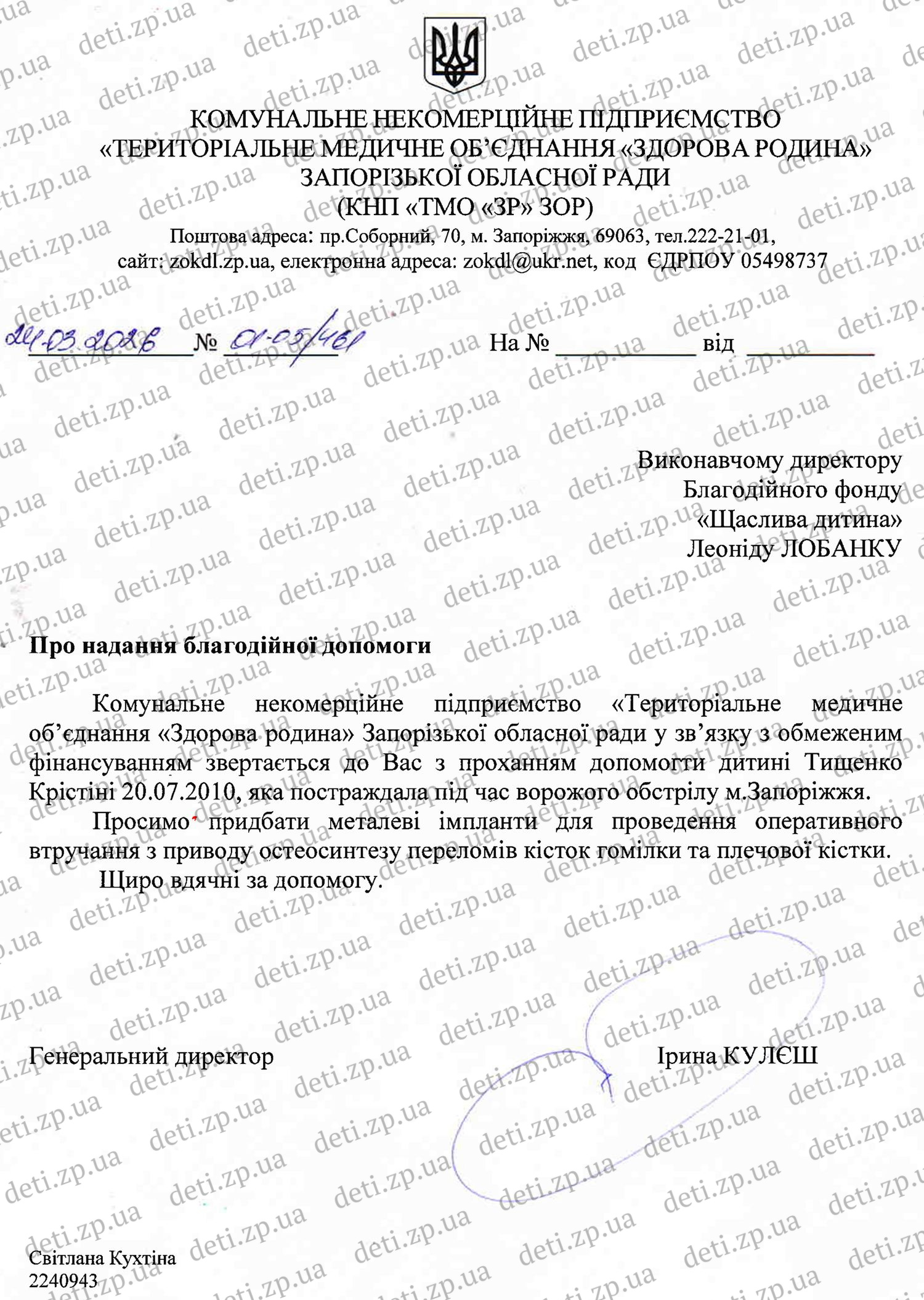 Того ж дня лікарі Запорізької обласної дитячої лікарні провели складну операцію — остеосинтез плеча та правої гомілки. А через кілька днів ще одна - видалення змертвілих тканин після опіку, пересадка шкіри та додаткове хірургічне втручання на нозі.